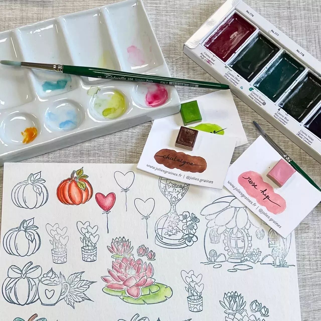 Avec Hélène, apprendre à coloriser ses tamponnages à l'aquarelle