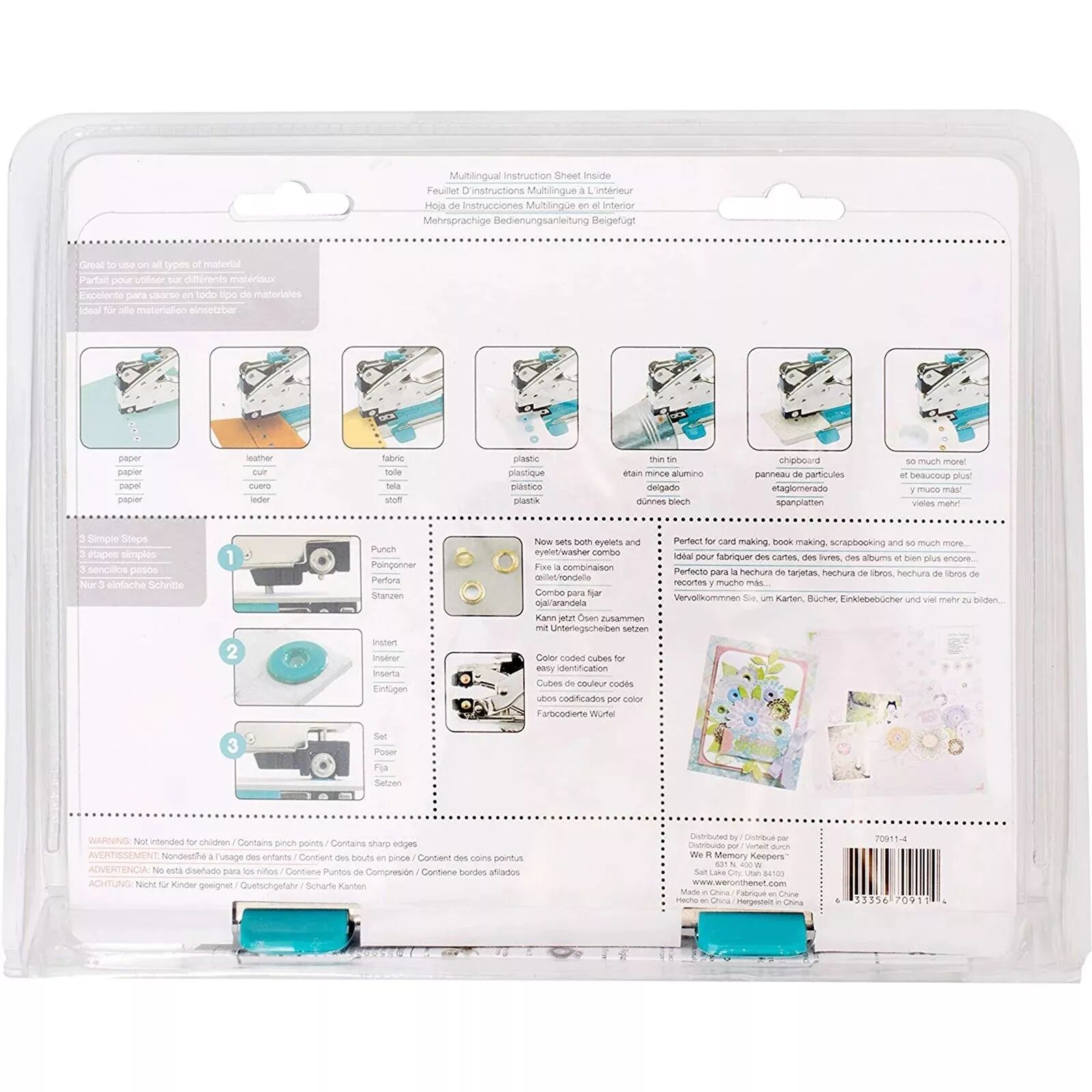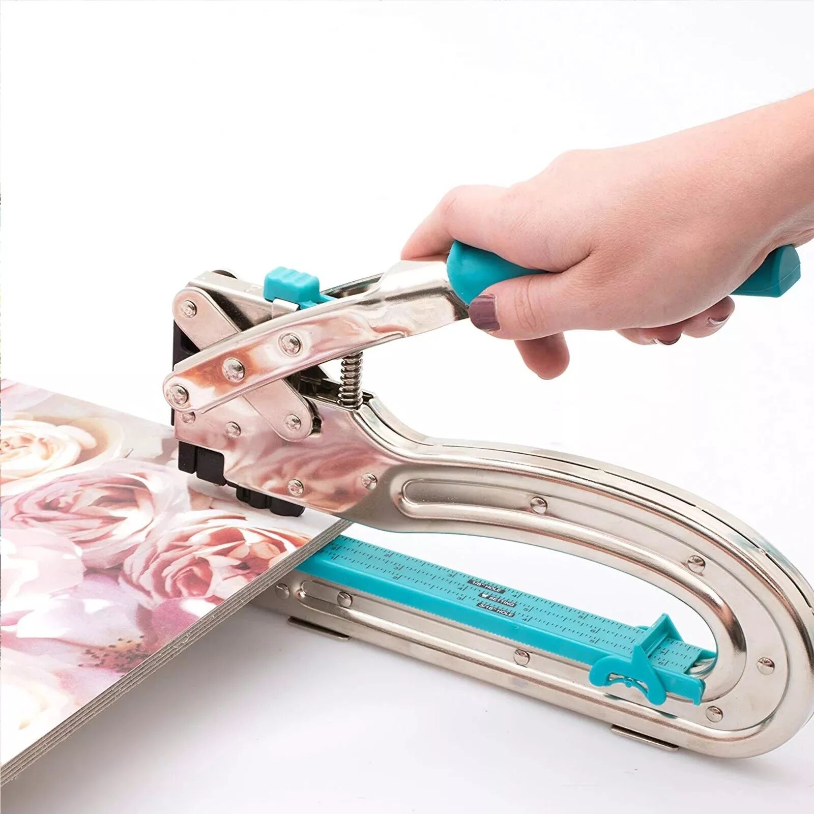 Permet de perforer et de poser des oeillets au centre d'une page de scrapbooking.