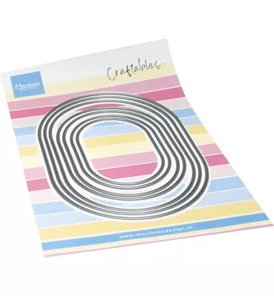 Ces dies – oval rectangle de Marianne Design sont un ensemble de matrices métalliques avec des formes rectangulaires ovales, conçues comme frames de base et formes de cartes.