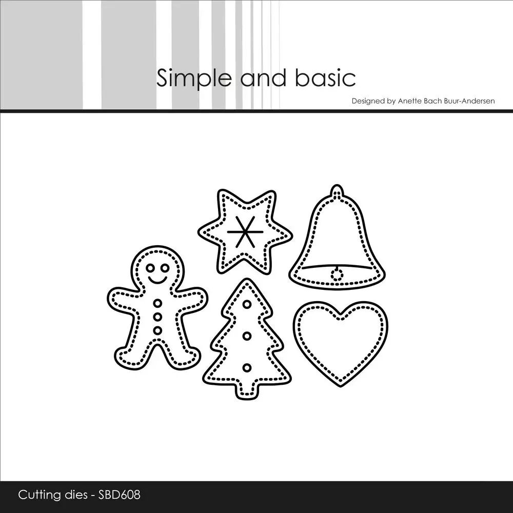 sapin, étoile, coeur, cloche et bonhomme de pain d'épice