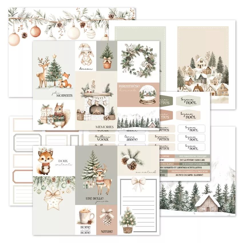 Pad de 24 papiers imprimés, et 63 die-cuts, motifs prédécoupés