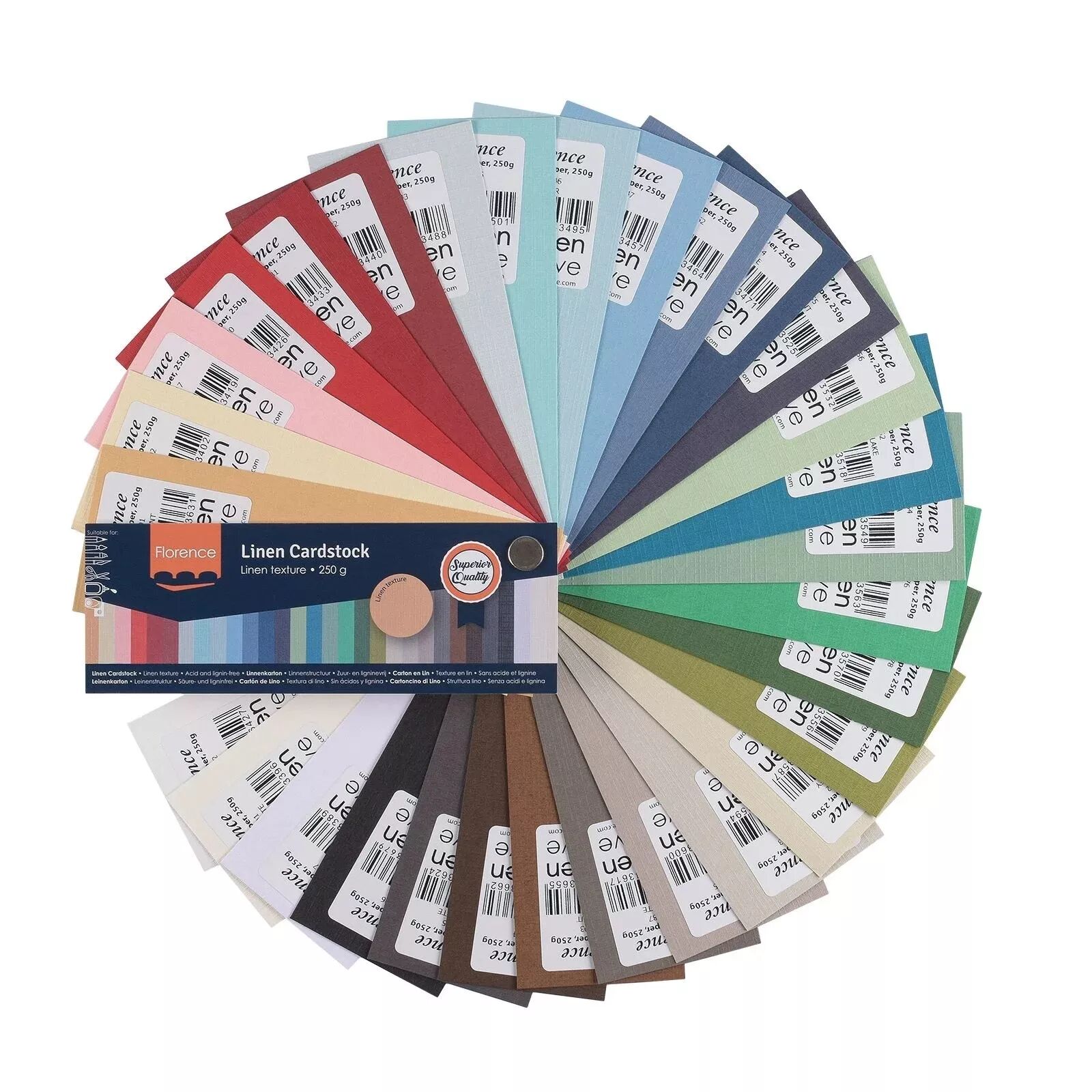 Outre la possibilité de comparer et de combiner les couleurs, le nuancier vous permet également de sentir la texture et l'épaisseur du papier cartonné. Il est ainsi encore plus facile de choisir la couleur et la texture qui conviennent le mieux à votre projet. De plus, un nuancier est également disponible pour le papier cartonné lisse (2926-991) de Florence, ce qui vous donne encore plus de possibilités pour ajouter de la couleur à vos créations en papier.