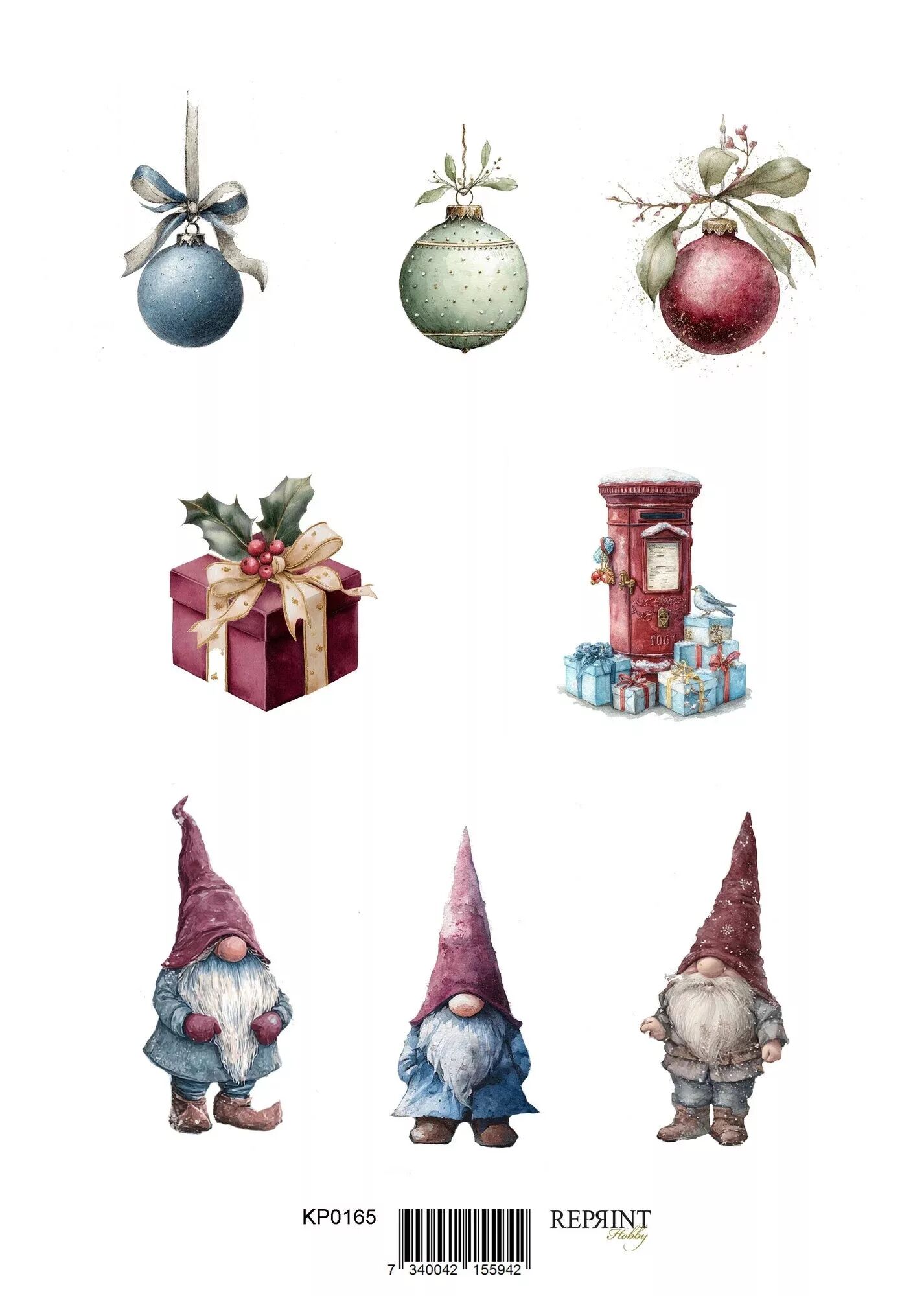 Motifs de Noël vintage : boules, cadeau, boite aux lettres, gnomes