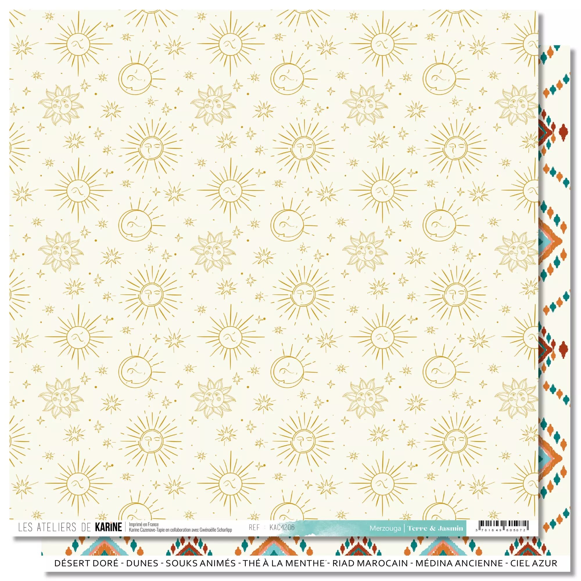 Accueil > Papier et Matière > Papier scrap imprimé > Papier Terre & Jasmin - 06 Merzouga - Les Ateliers de Karine