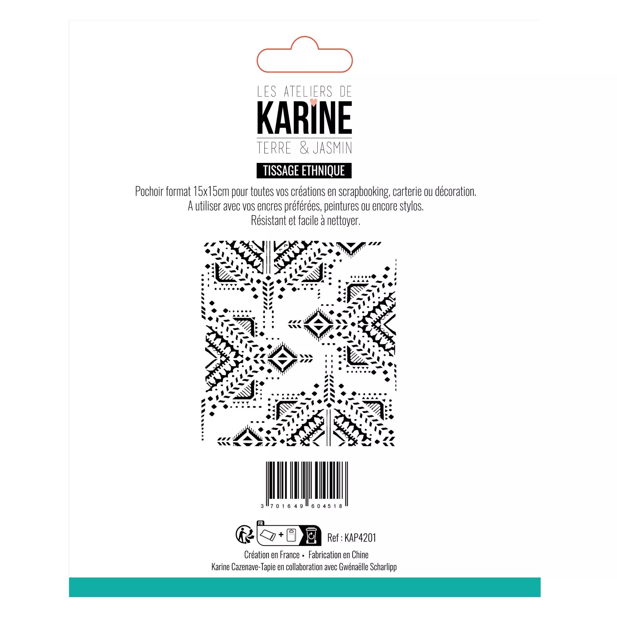 Accueil > Tampon & Mask-Pochoir > Mask - Pochoir > Pochoir - Terre & Jasmin - Tissage ethnique - Les Ateliers de Karine
