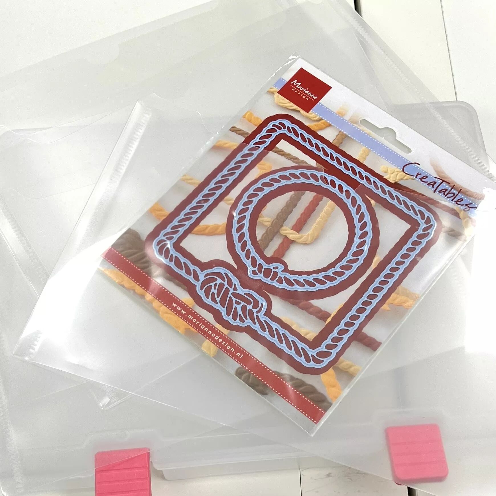 Cette nouvelle version de la boîte est plus solide et comprend des pochettes plastifiées pour ranger les matrices de découpe, les sets de tampons et autres fournitures de loisirs créatifs en papier.