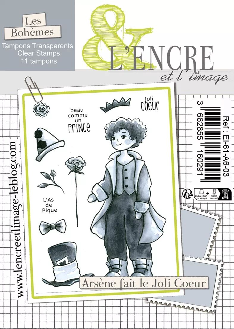 Accueil > Tampon & Mask-Pochoir > Tampon > Tampon - Les Bohèmes - Arsène fait son Joli Coeur - L'encre et l'image